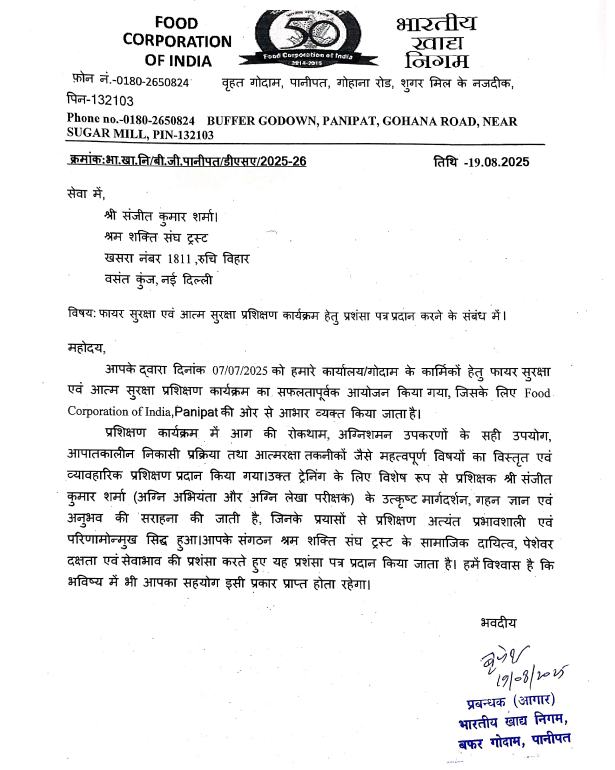 • श्रम शक्ति राष्ट्रीय जन आरोग्य केंद्र | क्लिनिक परियोजना, • SHRAM SHAKTI SANGH – Accounting & Law Works (भारतीय वित्त सेवा मिशन, शाखा रेवती, बलिया), • शिष्टाचार भेंट एवं श्रम शक्ति संघ के सामाजिक कार्यों की सराहना , • महाराजगंज लोकसभा क्षेत्र के माननीय सांसद श्री जनार्दन सिंह सिग्रीवाल जी द्वारा संस्था के राष्ट्रहितकारी कार्यों की सराहना, प्रशंसा पत्र प्रदान, • माननीय केंद्रीय राज्य मंत्री द्वारा संस्था की कार्यशैली को प्रशंसा पत्र प्रदान , • राष्ट्रीय सरोकारों को समर्पित कार्यों की पहचान , • भारतीय खाद्य निगम (FCI) के साथ राष्ट्र सेवा की दिशा में एक सशक्त कदम, • माननीय कृषि राज्य मंत्री श्री भागीरथ चौधरी जी ने श्रम शक्ति संघ की परियोजनाओं की सराहना की, • माननीय जल राज्य मंत्री श्री राज भूषण चौधरी जी से सौजन्य भेंट — विकसित भारत की दिशा में सार्थक संवाद, • आदरणीय डॉ. हर्षवर्धन जी से सौजन्य भेंट — राष्ट्रहित में सार्थक संवाद, • श्रम शक्ति संघ को यह गौरव प्राप्त हुआ कि माननीय सुश्री सावित्री ठाकुर जी (केंद्रीय राज्य मंत्री, महिला एवं बाल विकास मंत्रालय, भारत सरकार) से एक सार्थक एवं उत्साहवर्धक मुलाकात हुई।, • राष्ट्रहित में संवाद, सहयोग की प्रतिबद्धता, • दिल्ली प्रदेश भारतीय जनता पार्टी – एसटी मोर्चा के माननीय प्रदेश अध्यक्ष श्री सी. एल. मीना जी, • श्रम शक्ति संघ की ओर से माननीय श्री तोखन साहु जी (केंद्रीय मंत्री, भारत सरकार) से राष्ट्रहित से जुड़े विषयों पर गहन एवं सार्थक चर्चा हुई।, • माननीय मंत्री जी से सौहार्दपूर्ण भेंट, • लोक संगीत कथा कार्यक्रम का भव्य आयोजन, • LIC कार्यालयों में अग्नि सुरक्षा प्रशिक्षण सफलतापूर्वक संपन्न 🔥🏢, • Ministry of Finance के कर्मचारियों को विशेष प्रशिक्षण, • युवा बाबा श्री संतोष जी महाराज ने श्रम शक्ति संघ के कार्यों की सराहना की, • दिल्ली BJP पूर्वांचल प्रकोष्ठ के अध्यक्ष द्वारा श्रम शक्ति संघ की सराहना, • माननीय केंद्रीय राज्य मंत्री पबित्रा मार्गरिटा के साथ विशेष मुलाकात एवं सराहना, • रेल सुरक्षा एवं प्रशिक्षण को लेकर माननीय केंद्रीय मंत्री का निर्णायक समर्थन, • माननीय श्री कृष्ण पाल गुर्जर जी केंद्रीय राज्य मंत्री (Cooperation), भारत सरकार ने हमारी संस्था द्वारा किए जा रहे प्रशिक्षण, सुरक्षा एवं राष्ट्रहित से जुड़े कार्यों की विशेष रूप से सराहना की।, • माननीय मेयर द्वारा श्रम शक्ति संघ के कार्यों की सराहना , • माननीय राज्य मंत्री दुर्गा दास उइके जी द्वारा सराहना एवं मार्गदर्शन, • 🔥 जम्मू–कश्मीर के पुलवामा ज़िले में Fire Safety हेतु विशेष प्रशिक्षण 🔥, • BHEL की सुरक्षा में श्रम शक्ति संघ की निर्णायक भूमिका 🔥, • 🔥 भारतीय रेलवे हेतु विशेष अग्नि-सुरक्षा प्रशिक्षण 🔥, • भारत सरकार की संस्था से मिला ग